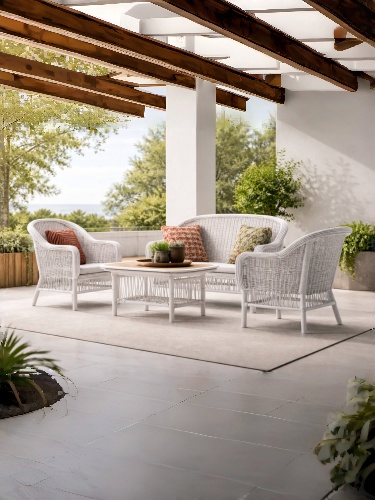 Questo set da giardino include un divano, due poltrone e un tavolino coordinato, progettati per terrazze, patii e giardini. La struttura in rattan intrecciato naturale è completata da cuscini in tessuto bianco adatti all’uso esterno. Le sedute garantiscono comfort quotidiano, mentre il tavolino centrale offre una superficie pratica per bevande e oggetti decorativi. Il set viene fornito in elementi separati con montaggio semplice ed è ideale per ambienti esterni privati.